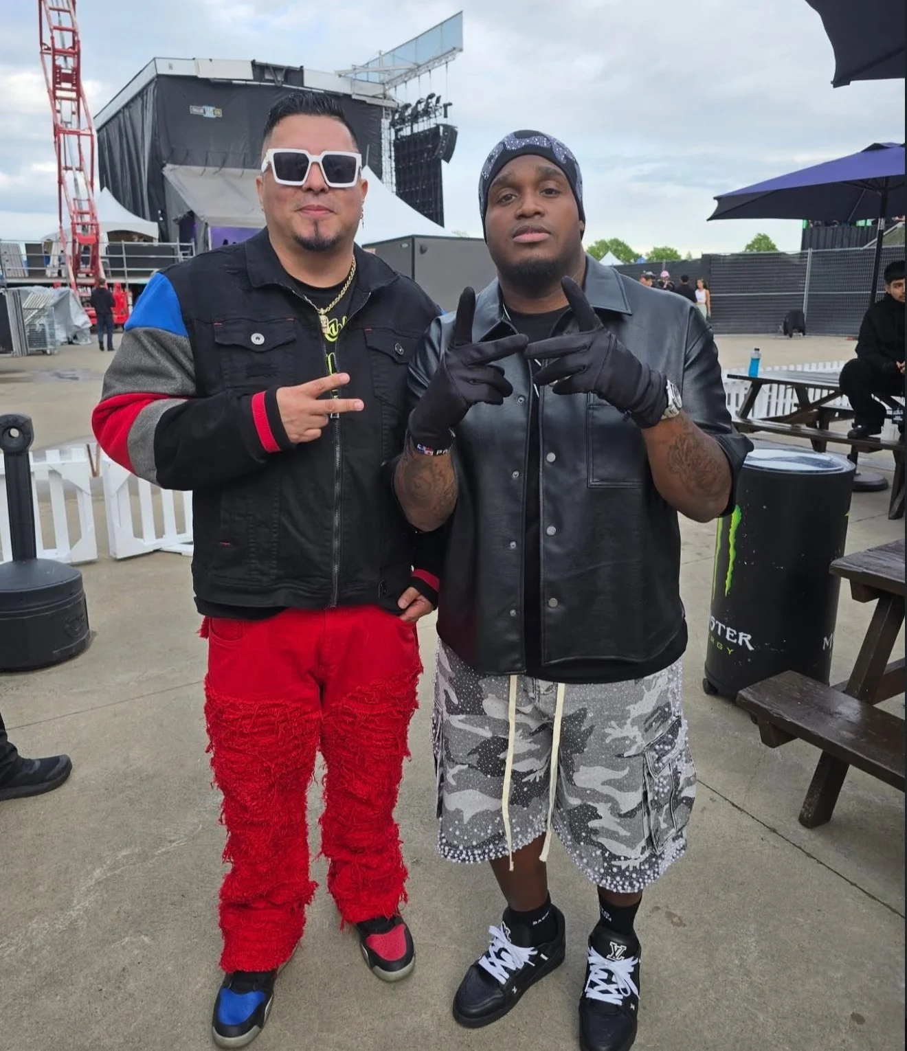 MC Ivo (à gauche) aux côtés de Sech, artiste panamien multiplatine connu pour ses collaborations avec Bad Bunny, Feid et Ozuna, lors du festival Fuego Fuego à Montréal.
